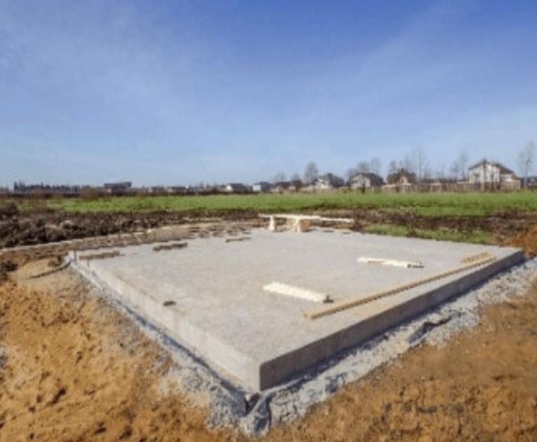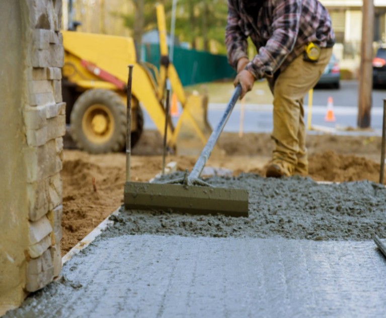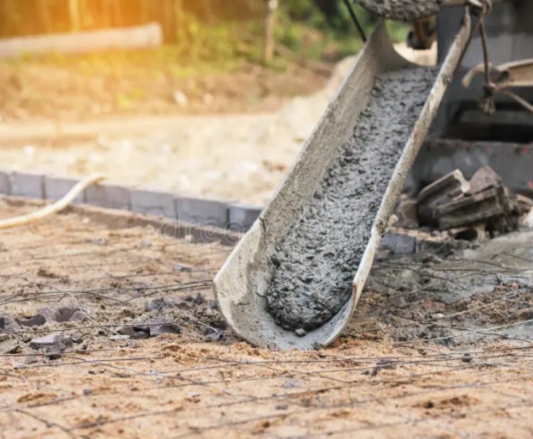 The process of laying concrete as a stable foundation or structural component for a building or road.
